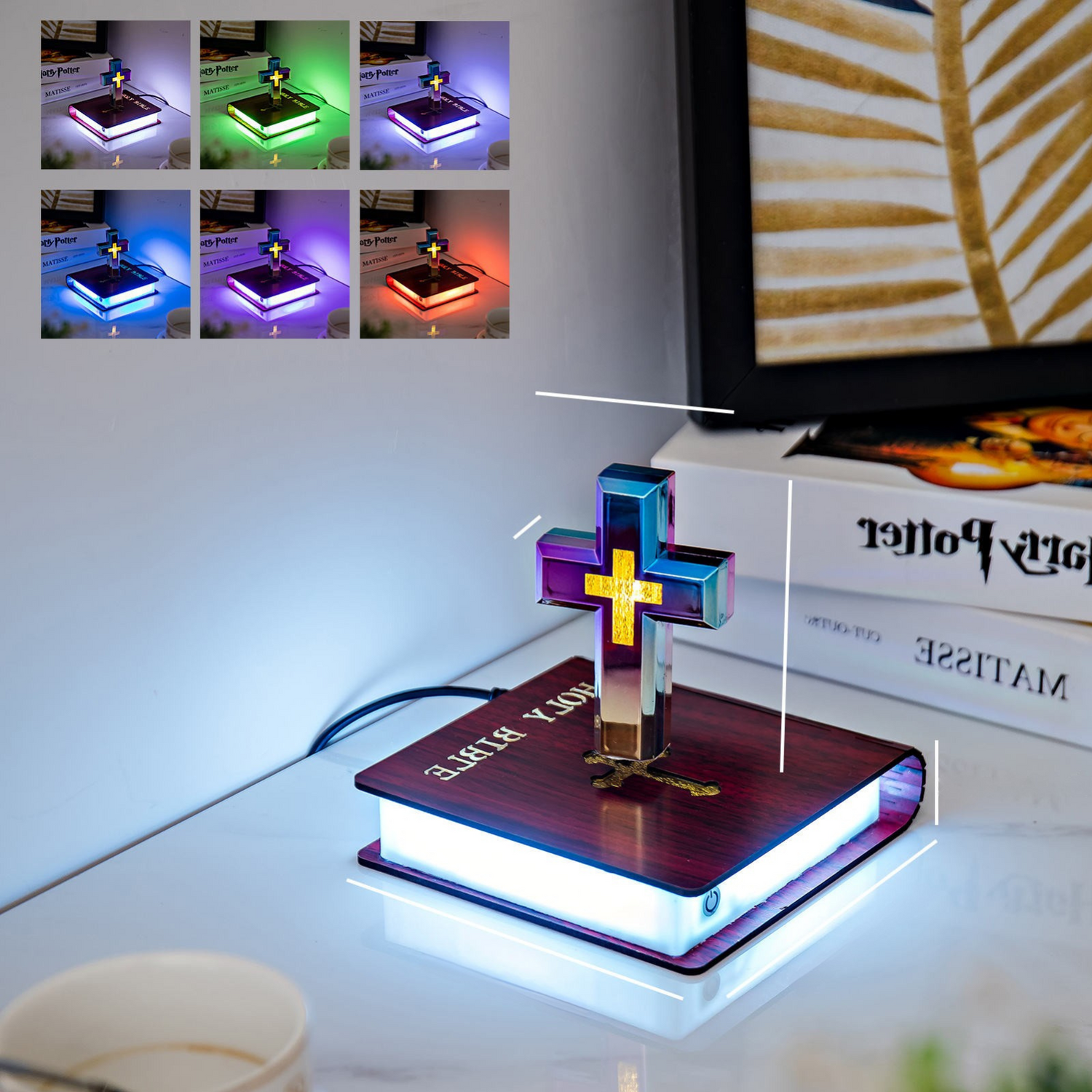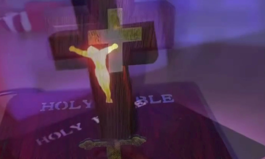 💎 Ilumina tu fe y deja que la luz de Cristo inspire cada momento con Luz de Fe, nuestra cruz levitante sagrada que flota suavemente sobre una Biblia abierta, llenando tu hogar de paz, serenidad y devoción.